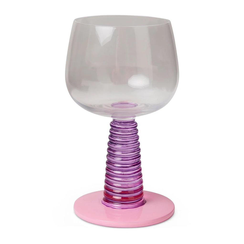 This Sardinia Stalk Wine Glass 2P Set features two clear wine glasses with striking purple and pink stalk stems