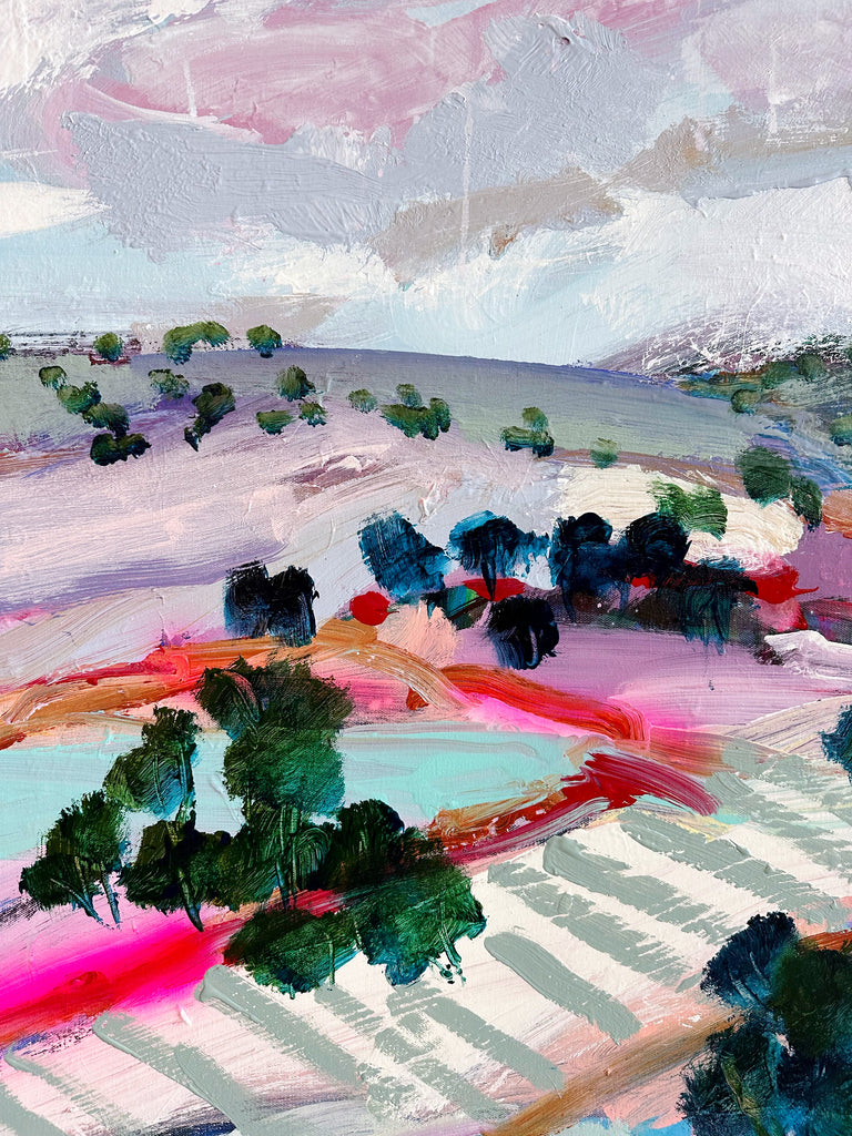 Kezz is inspired by her surroundings. Living in Orange NSW, the landscapes are beautiful and plentiful, and Kezz is often painting vineyards and lakes