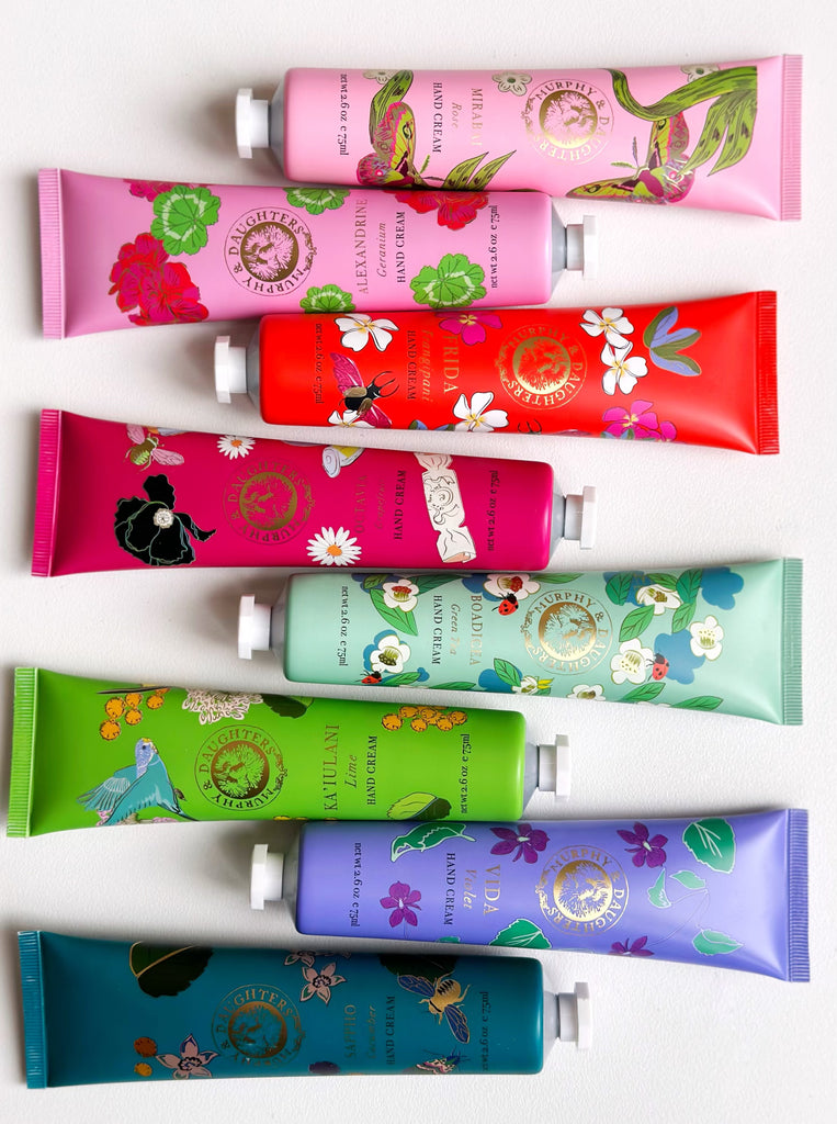 Named after inspirational women through history. these hand creams are designed to uplift, inspire and heighten your senses. In pretty tubes and packaged in a luxe matching box these hand creams make an exquisite gift for friends (or yourself).