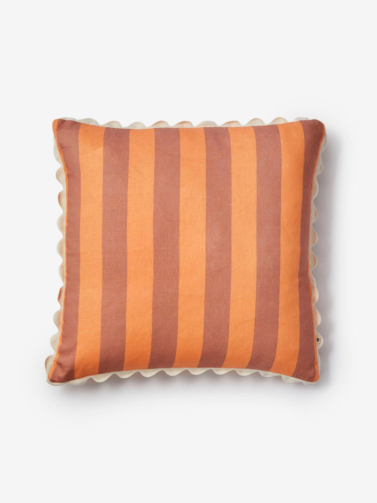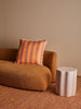 This peach linen cushion features our hand-painted Bold Stripe design, offering a subtle nod to 1960s pop colour