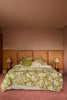 Delicate floral linen pillowcases in rich olive green bring a garden-inspired elegance to your bedding