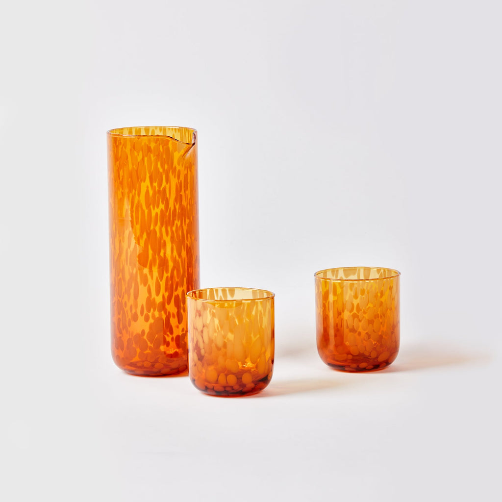 Our Dots Orange carafe is made from hand blown glass featuring specks of opaque and clear coloured glass