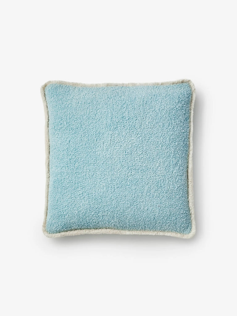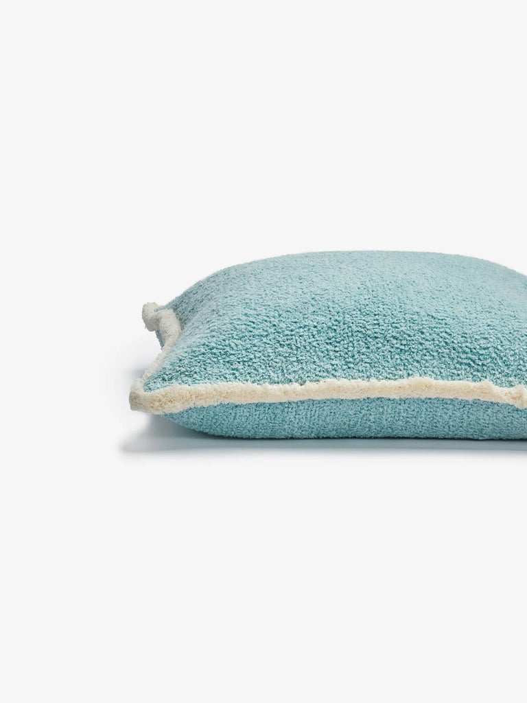 In a soft blue tone, this textured cushion offers understated warmth and balance, pairing beautifully with expressive patterns