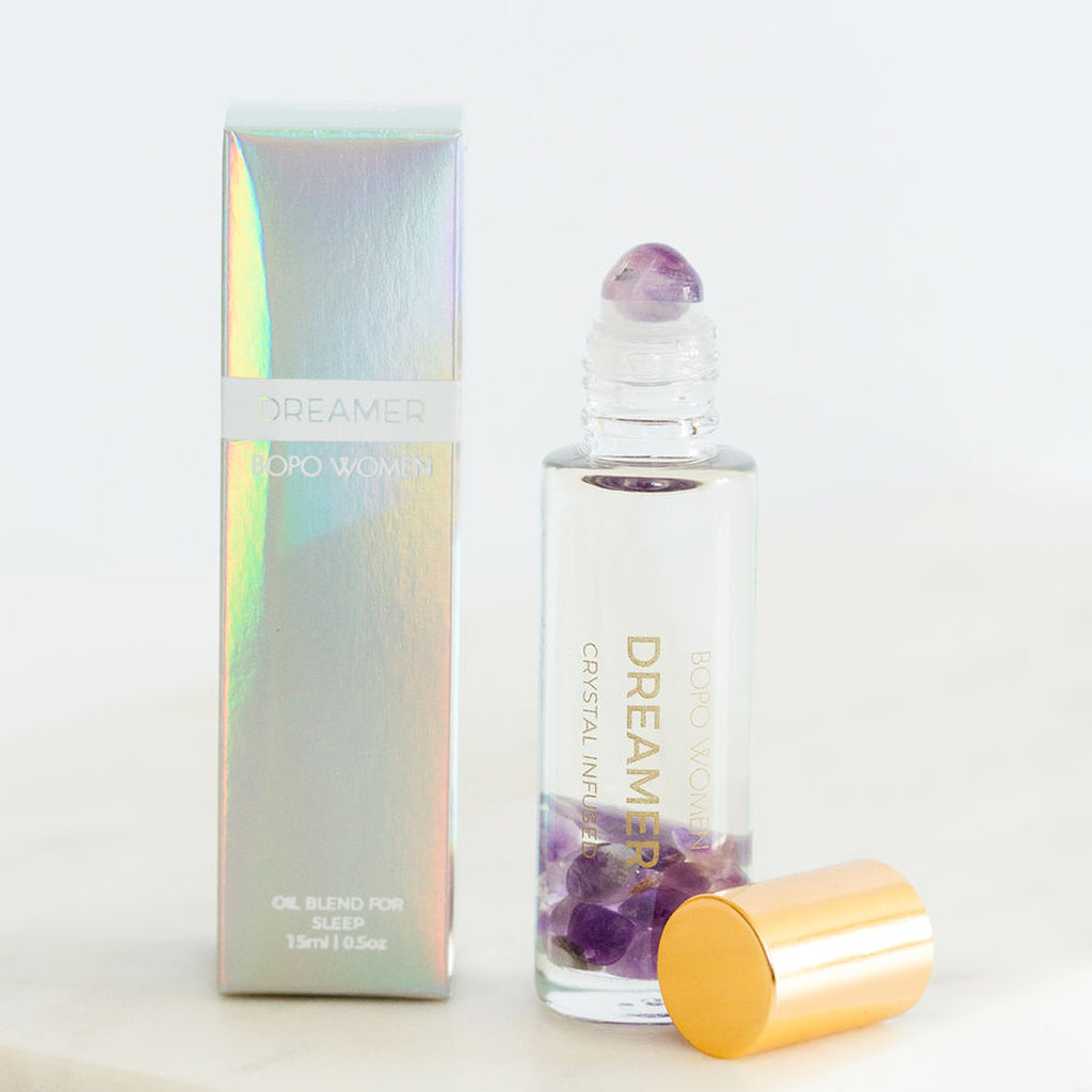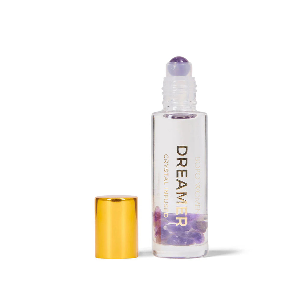 A crystal infused essential oil blend to calm the mind, relax the body and support peaceful sleep. A dreamy mix combining lemon, juniper berry and lavender essential oils. Perfect as a light natural perfume alternative. Features a Dream Amethyst rollerball.
