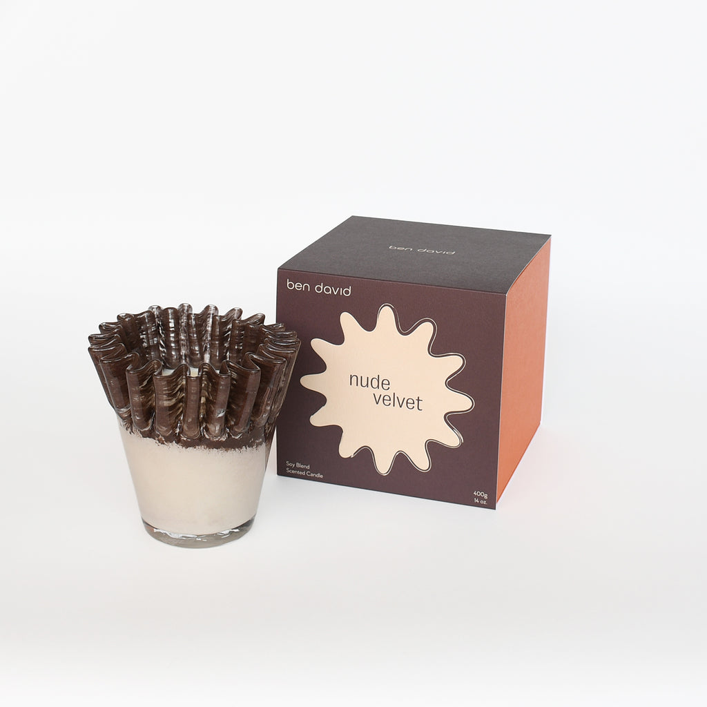 The Kiki Candle in Nude Velvet is from Ben David by Kas