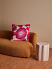 With oversized brushstrokes in vibrant pink, this linen floral cushion bursts with summer energy