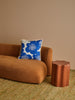 This blue linen cushion showcases the bold floral forms of our Jardin print, inspired by the sculptural beauty of anemones