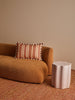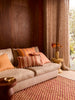 Bold geometry meets earthy warmth in this terracotta linen cushion, echoing the tiled floors of Moroccan courtyards