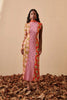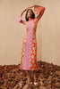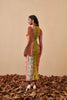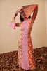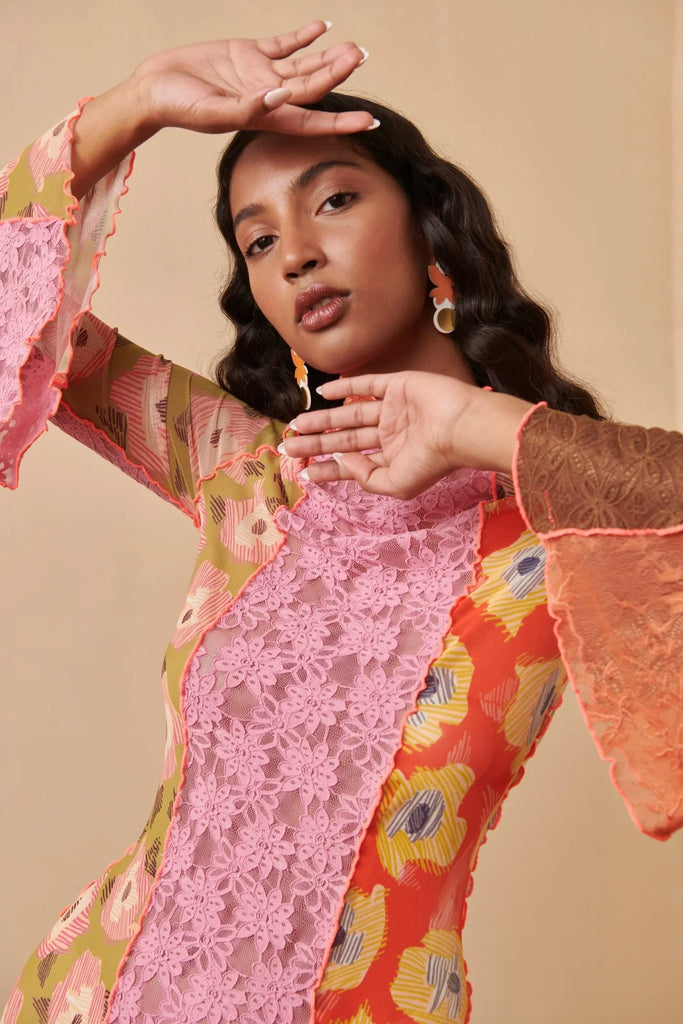 The Care Dress makes a striking statement with its vertical panels of floral print, lace, and vibrant colour blocking