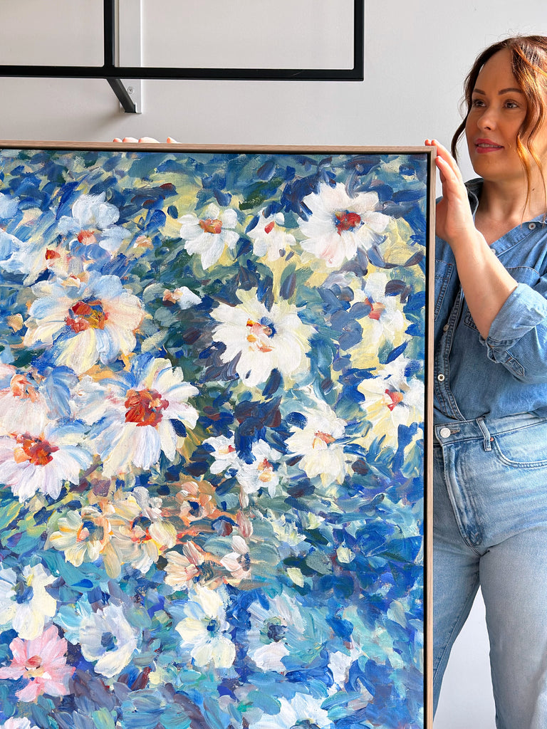 Abstract and floaty, this floral painting brings the garden indoors, letting buds and blooms find their joyful balance - Jude x