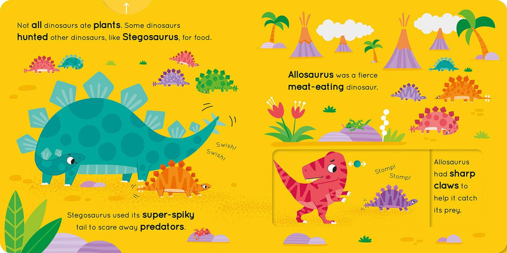 Explore and learn all about dinosaurs with this interactive book that's full of roar-some dinosaurs to move as you push, pull, and slide the card tabs on the pages!