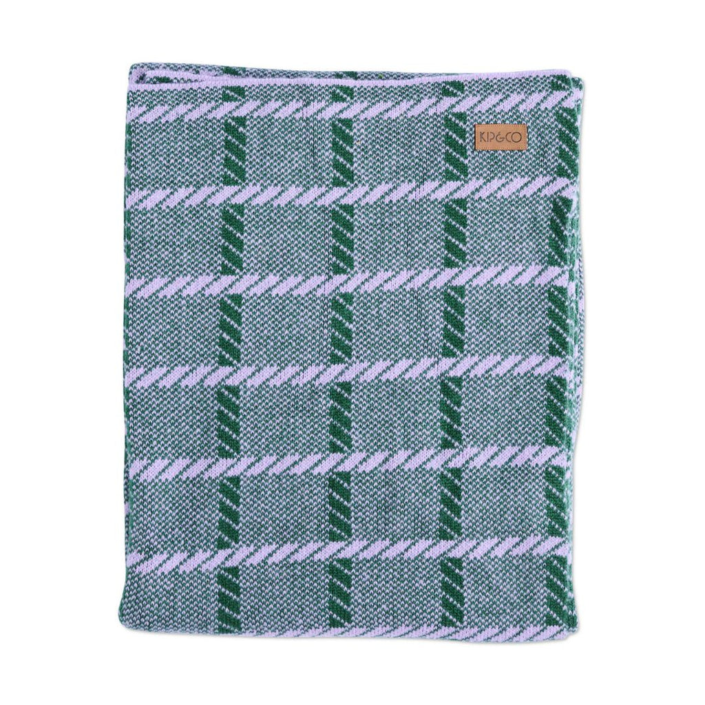 The Alpine Violet Check Blanket blends soft purple and forest green in a classic check, knitted for warmth with a beautifully soft hand feel