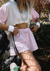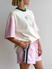 Baby pink grounds the piece in a playful yet athletic palette—equally at home on the court or styled off-duty