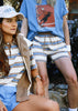 Across the chest, bold FAR MER blue branding ties back to the blue stripe in the Cinnamon Court Short, creating a cohesive set that balances heritage colour play with modern ease
