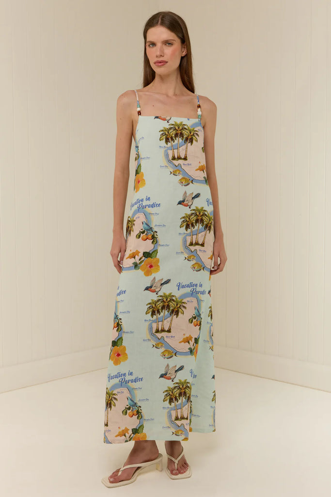 The Heidi Dress is crafted from a premium Linen, printed in our exclusive Palm Paradise print
