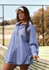 The Lounge Shirt in Blue Pinstripe is part of the Cowboy Tennis Club Collection by Whitney Spicer