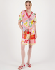100% Viscose V-neck short sleeve pullover polo shirt in our Lucky Me print