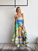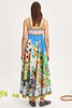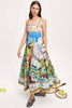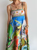 Crafted from lightweight, breathable linen, this sundress is adorned with a vibrant, hand-illustrated print that fuses retro-inspired motifs with a touch of surrealist whimsy