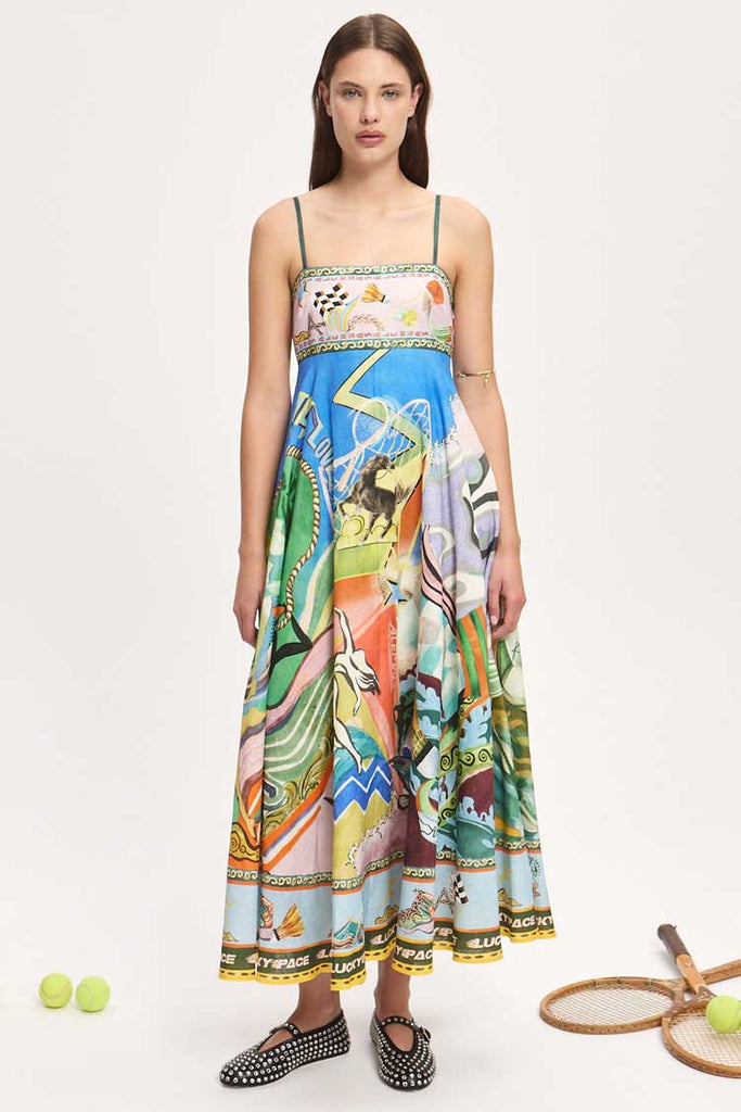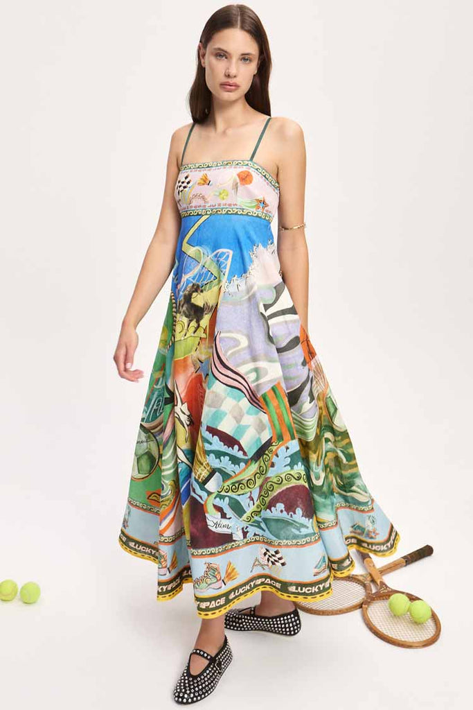 Breezy, bold, and effortlessly artistic, the Lucky Pace Linen Sundress by Alemais is a celebration of carefree elegance