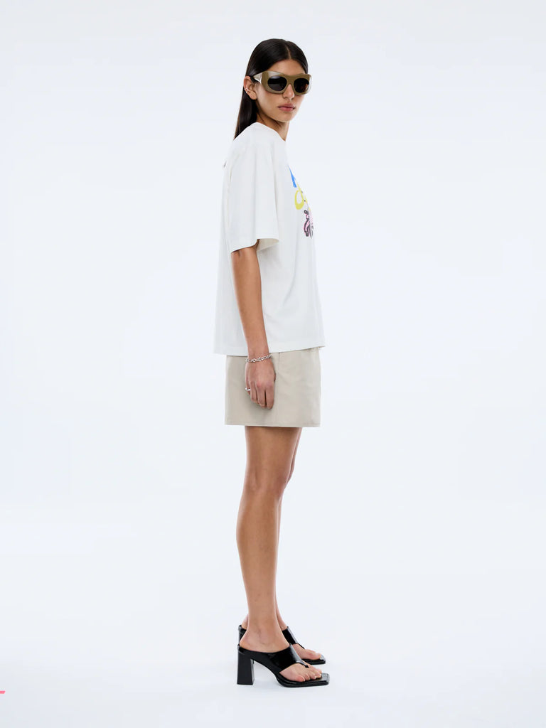The Pelly Floral Tee in vintage white is crafted from cotton, featuring a boxy relaxed-fit tee silhouette