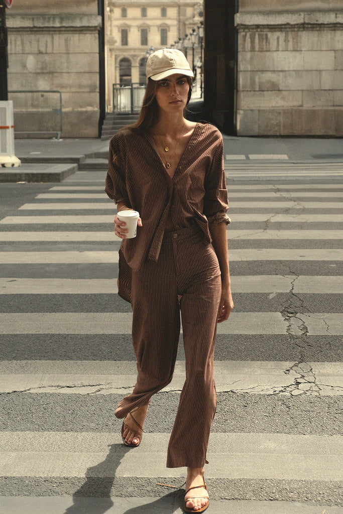 The Rio Pant in Cocoa Stripe is part of the SS25 Harvest Collection by Lilya