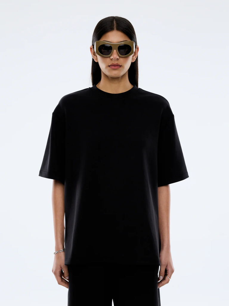 Cut from modal, the Sarah Oversized Tee in Vintage Black features an oversized tee silhouette