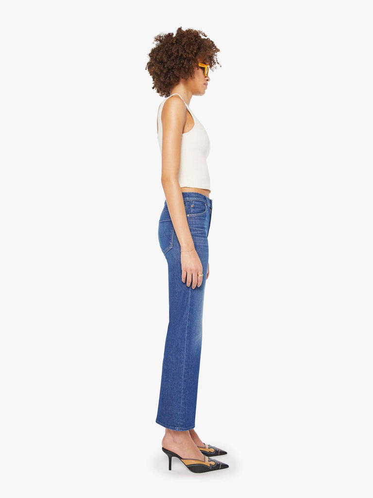 A high-rise straight leg jean with a zip fly, 28.25-inch inseam and a clean hem