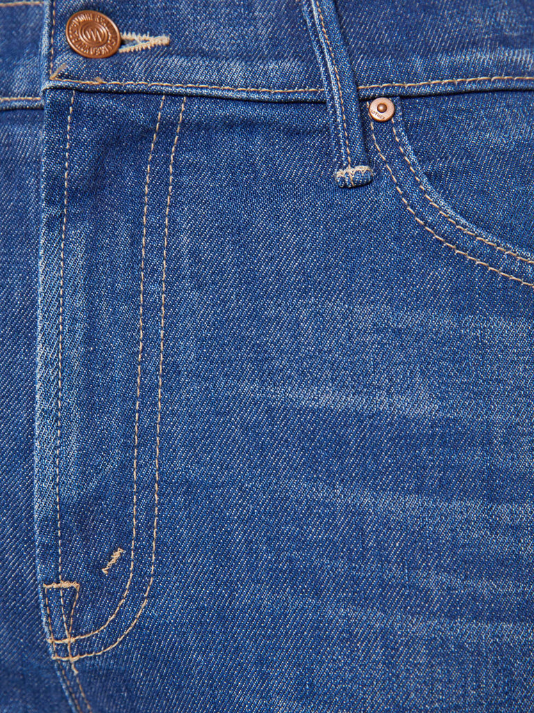 Made from denim with a touch of stretch, Do Not Disturb is a mid-blue with whiskering and fading at the knee