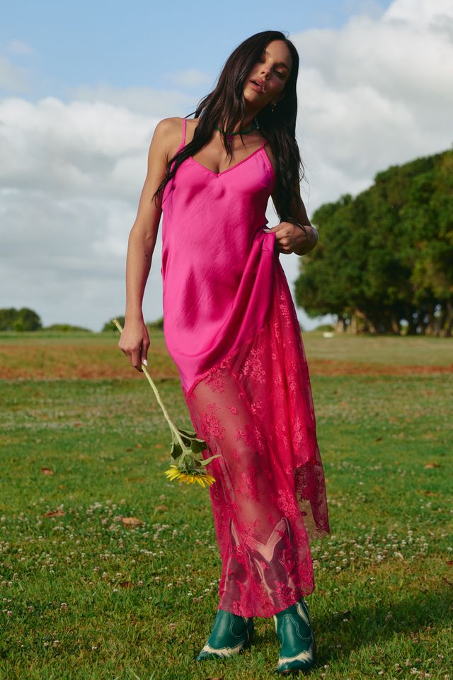 A silky satin slip with sheer lace, it’s a perfect clash of soft and bold — effortlessly sexy, endlessly wearable