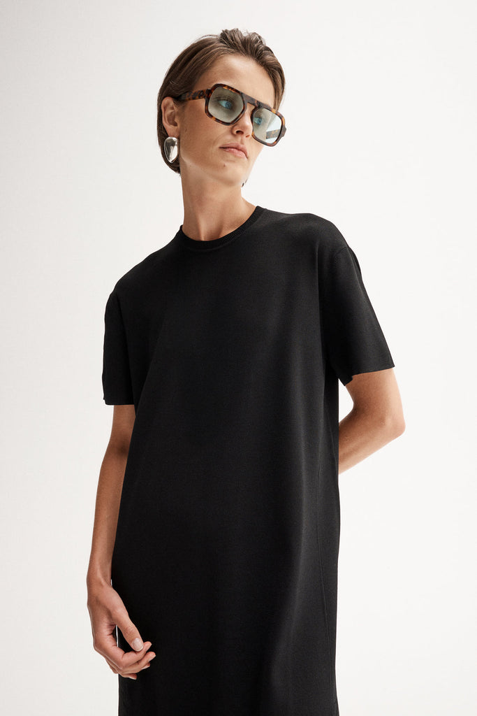 Cut to a relaxed fit, this dress features a round neckline, short sleeve, and side split hem