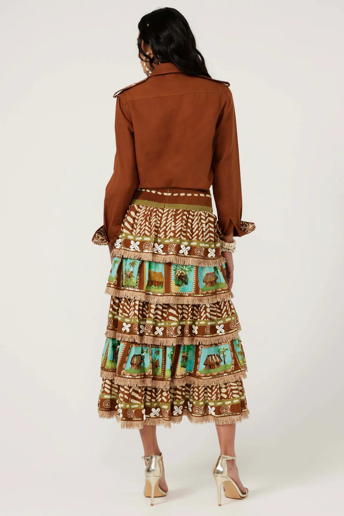 A celebration of craftsmanship and storytelling, the Canopy Hut Ruffle Skirt transforms natural inspiration into wearable art