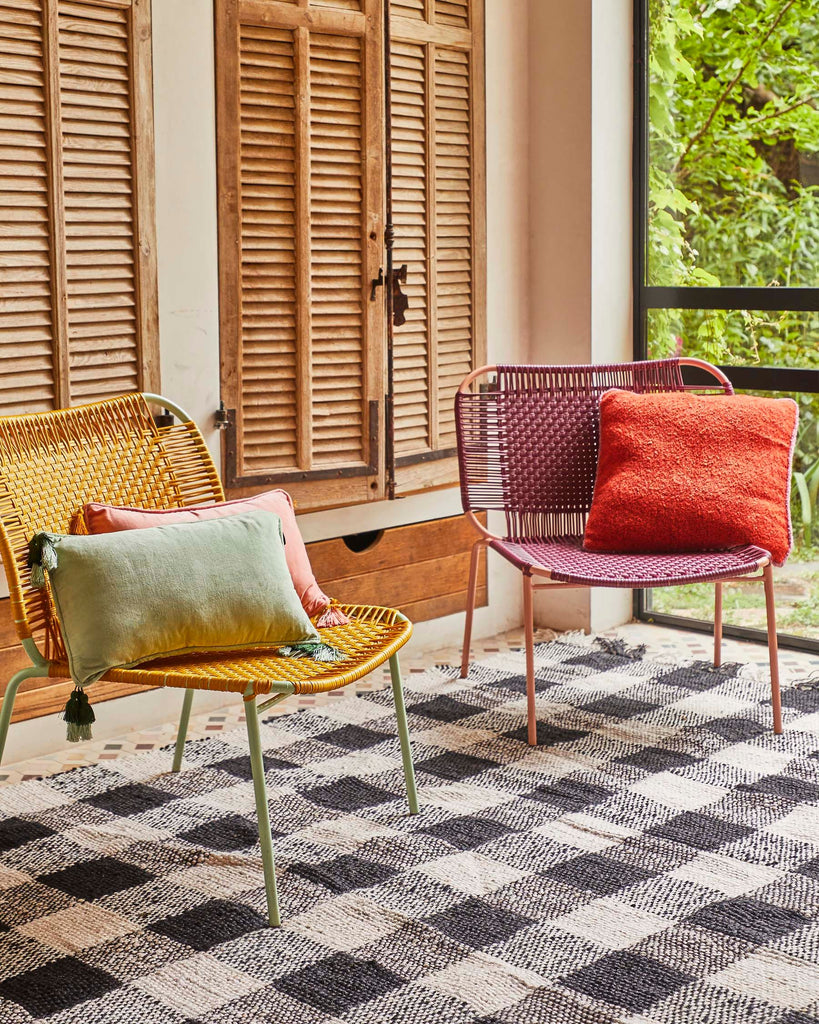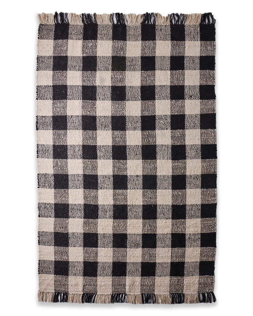 The Black and White Gingham Floor Rug is part of the SS23 Holiday Collection by Kip and Co