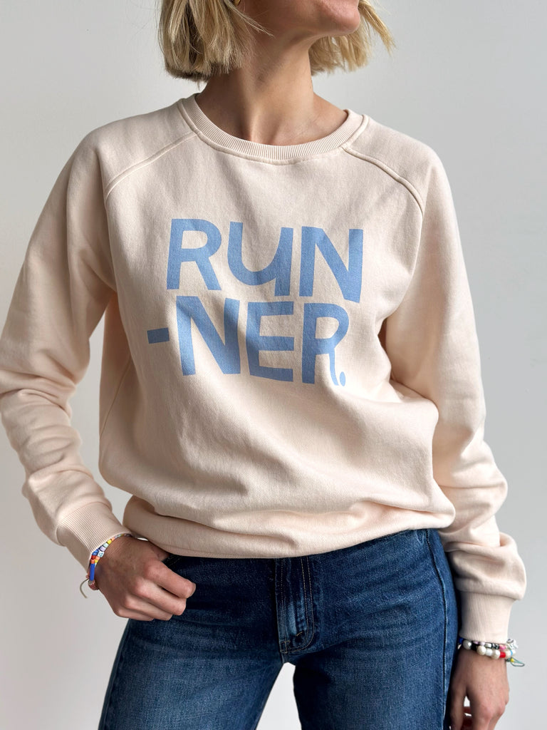 RUNNER cream cotton fleece lined regular fit sweatshirt