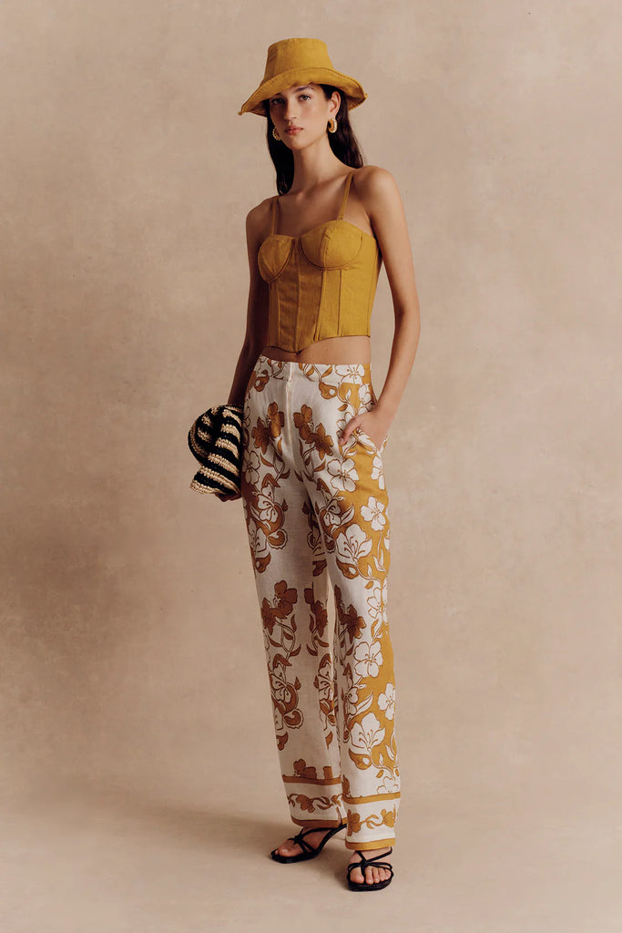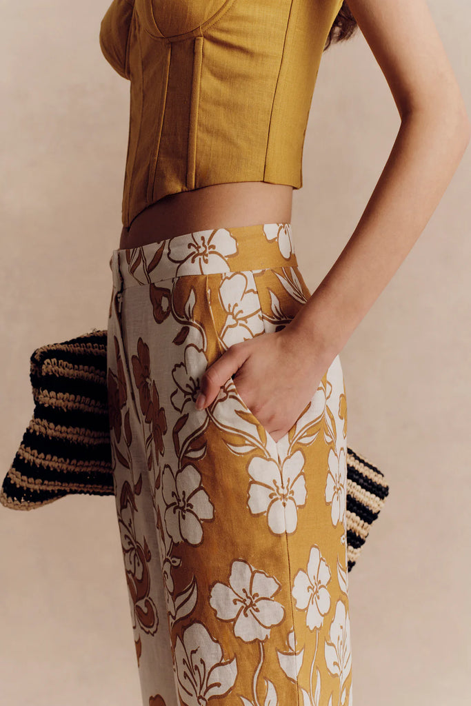 The Ambrose Pant is a straight leg pant fabricated with our Sunset Surf print in 100% Linen