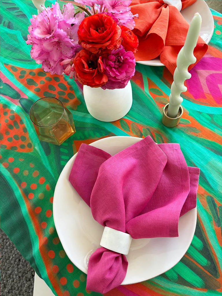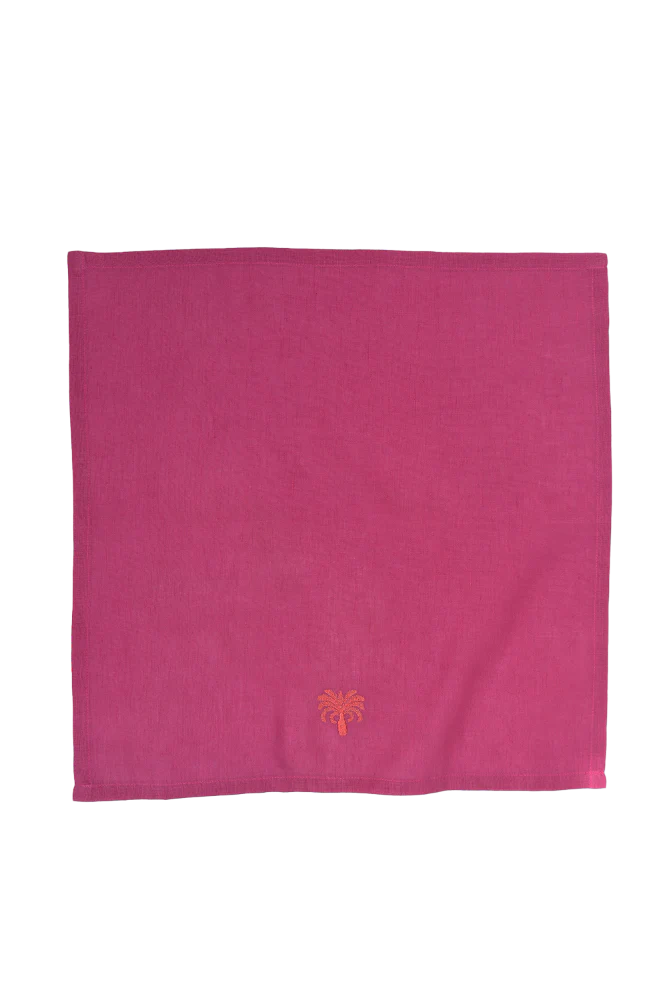 Hand dyed linen blend napkins embroidered with a contrast palm illustration