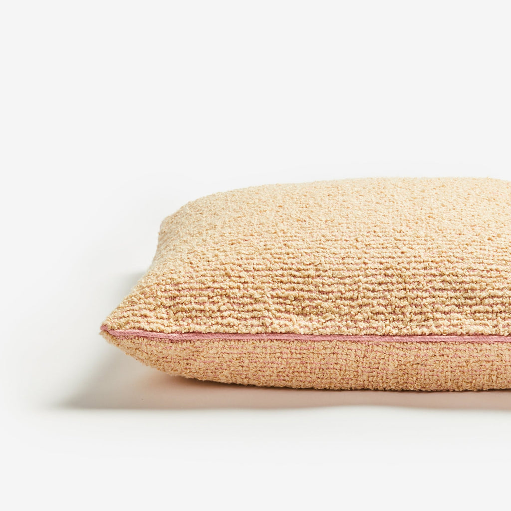 Hand loomed from 100% recycled PET, our Cloud Pink Boucle Cushion has a contrasting base fabric giving it a speckled finish in an irregular pattern