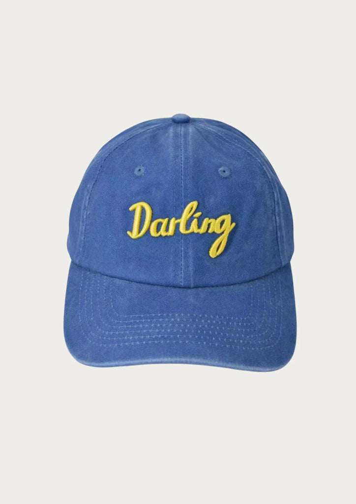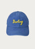 Darling embroidered on vintage wash blue cap with adjustable brass look strap