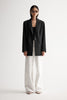 The Eloise Blazer reflects the standard of our brand, with a relaxed single-breasted silhouette, notched lapel, shoulder pads, and faux pockets to give the piece a crisp, masculine fit