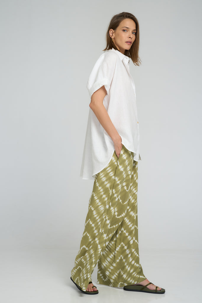 Designed with a wide leg, elastic waist, and practical pockets, these linen trousers balance relaxed ease with polished simplicity