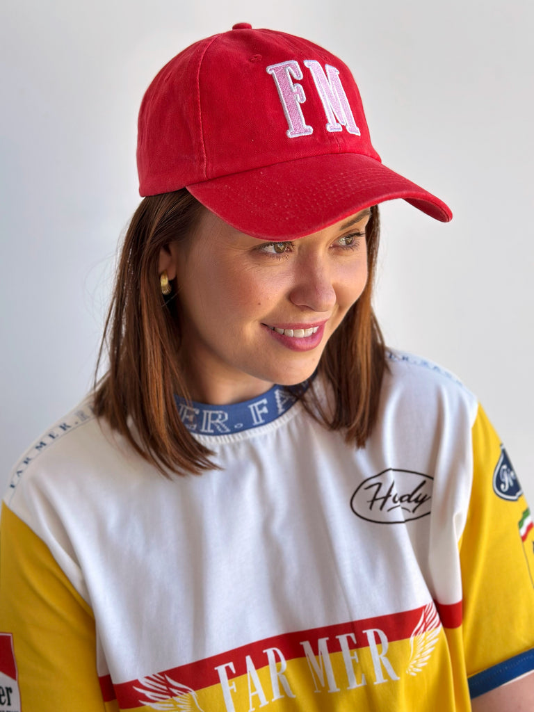 The FM Initials Cap in Red and Pink is by Whitmey Spicer