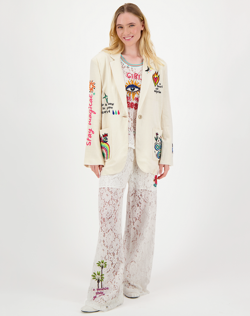 Linen white jacket with collar and lapels in our Enlightenment pattern