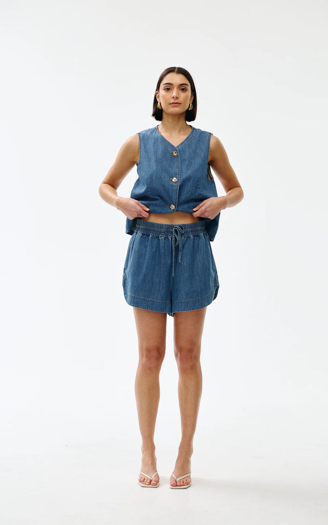 The Juniper Short in Denim is made in our classic, flattering short shape
