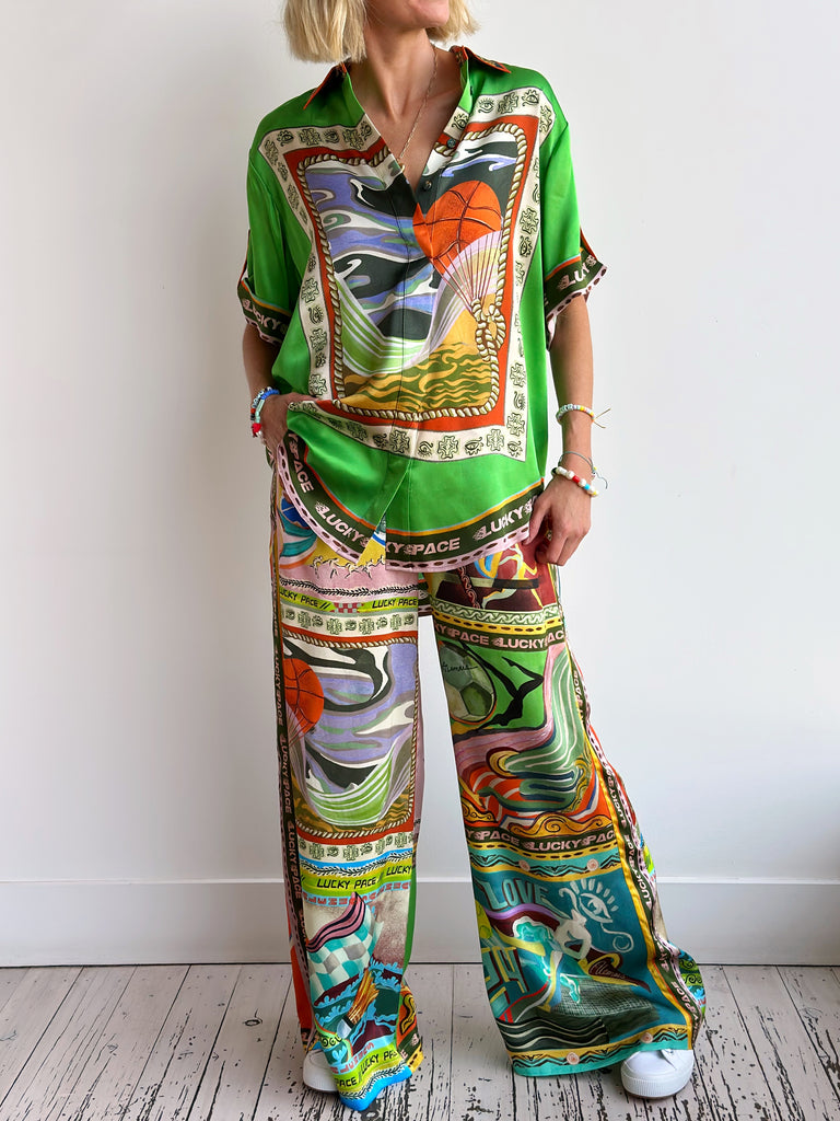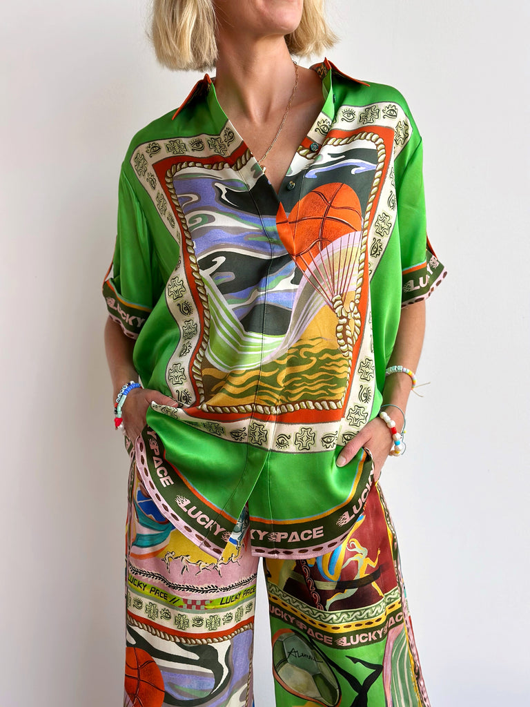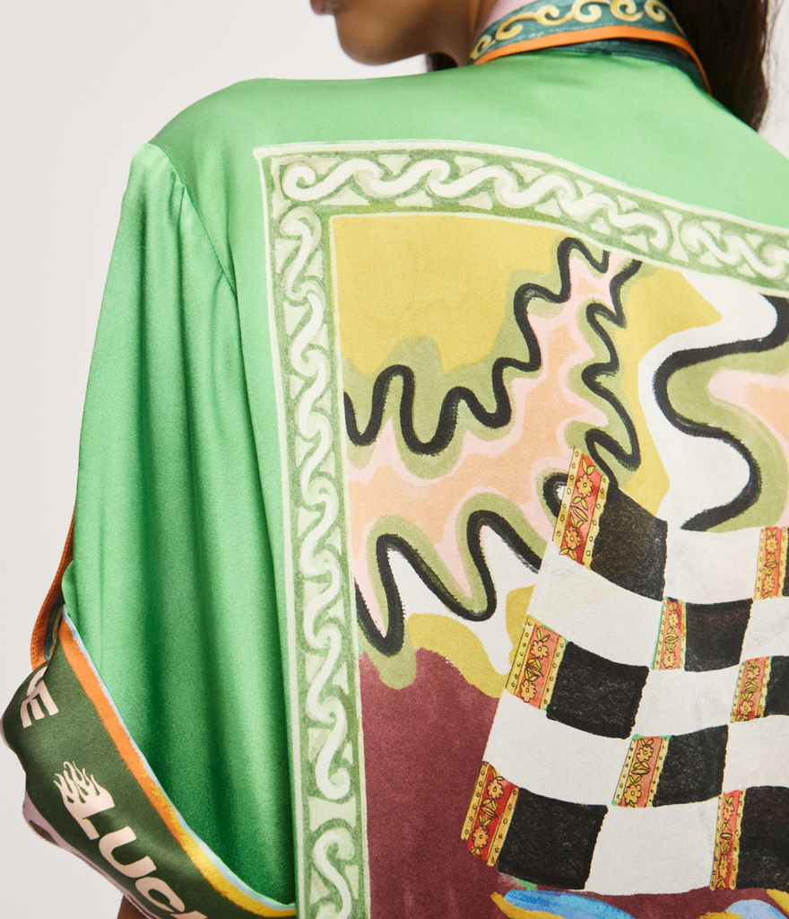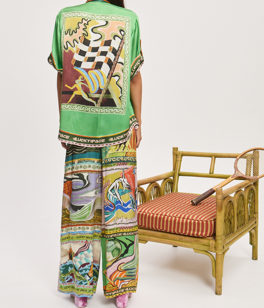 Introducing the Lucky Pace Silk Shirt, created in collaboration with artist Anouk Colantoni, features a pointed collar and stand for a sharp, sophisticated look