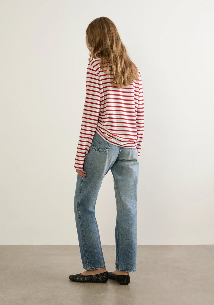 The North Long Sleeve Tee in red and white classic stripe is crafted from crisp cotton jersey with a printed stripe and soft, lightweight feel