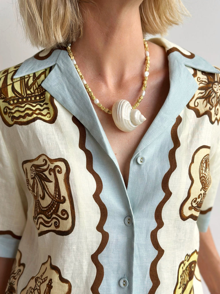 Crafted from luxurious gold vermeil, this stunning necklace features a conch shell pendant that will transport you to the seaside