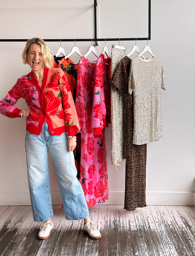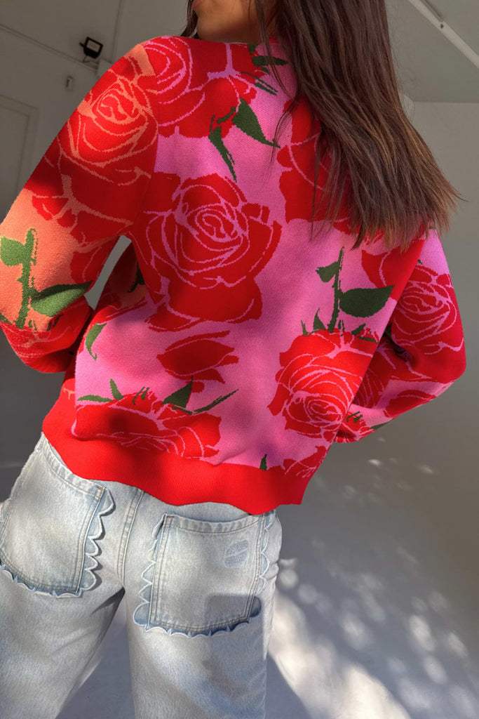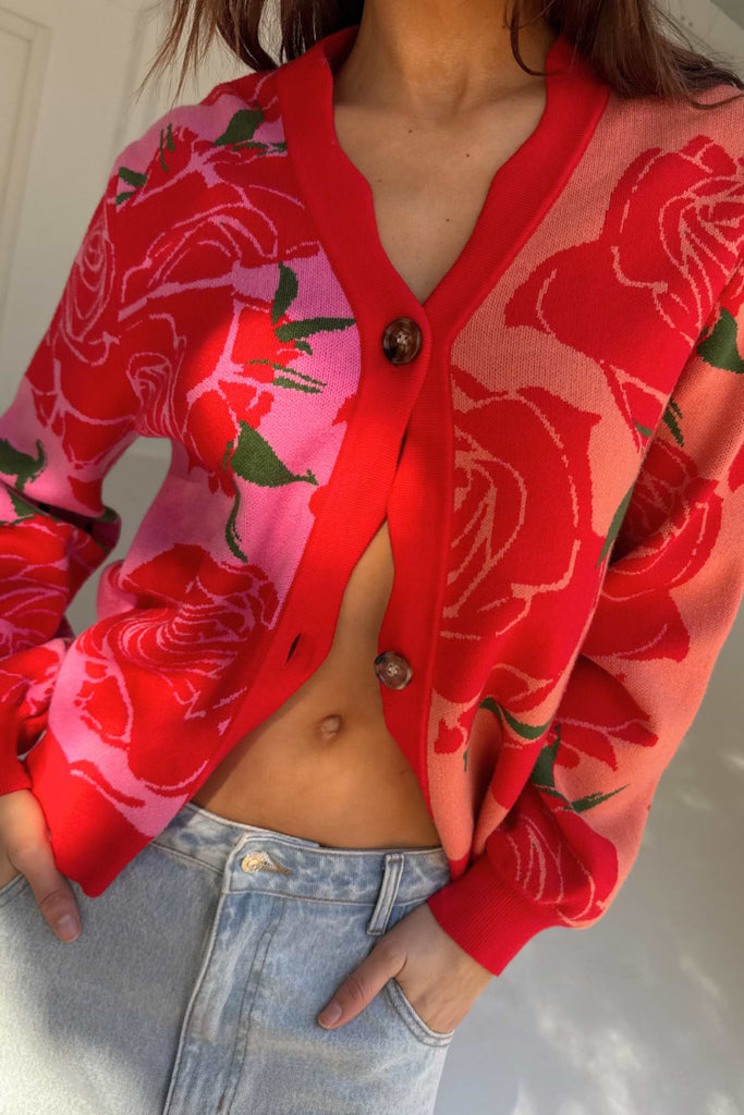 The gorgeous red rose print on contrast bases makes this cardigan a total standout