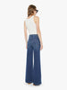 70s-inspired wide leg jeans with a high rise, zip fly, patch pockets, 31-inch inseam and a clean hem