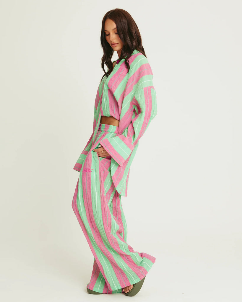 The Mexicola Pants are the wide-leg, breezy, throw-on-and-feel-fabulous pants you'll live in all season. Made from lightweight crinkle cotton, they fall effortlessly with a soft flow that feels like wearing summer itself.