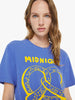 Made from 100% cotton, the faded blue tee features a crackled yellow pretzel graphic with text on the front. MOTHER's got the munchies
