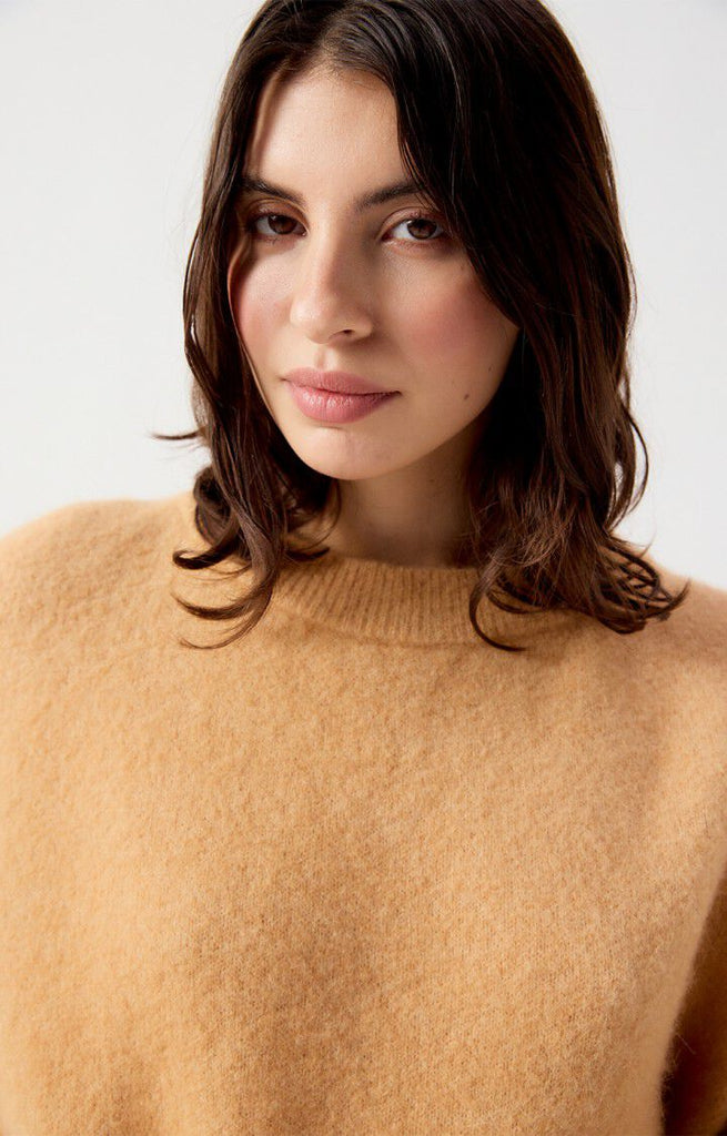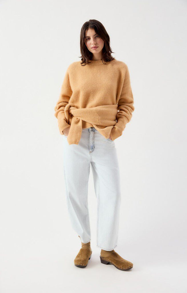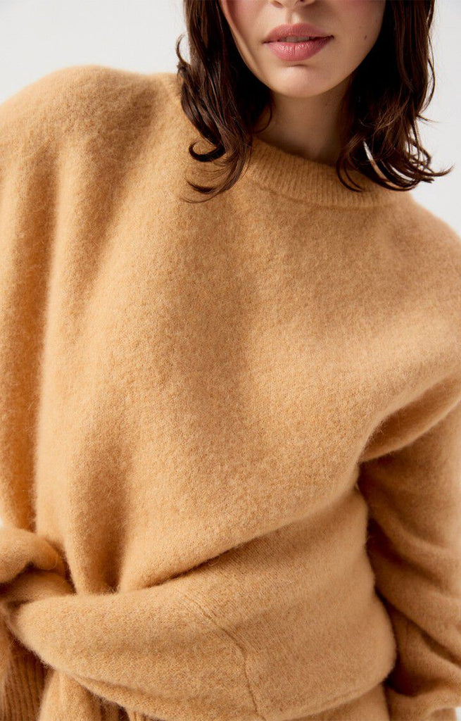 Its loose fit and blend of wool and fluffy alpaca make it a comforting everyday piece